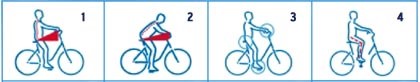 An drei Stellen berühren sich Fahrrad und Fahrer: am Sattel, am Lenker und an den Pedalen. Diese drei Punkte sollten so zueinander positioniert sein, dass eine bequeme und gesunde Sitzhaltung möglich ist. Der Sattel sollte ausreichend hoch gestellt sein, so dass die Kniebeugung beim Treten gering bleibt.